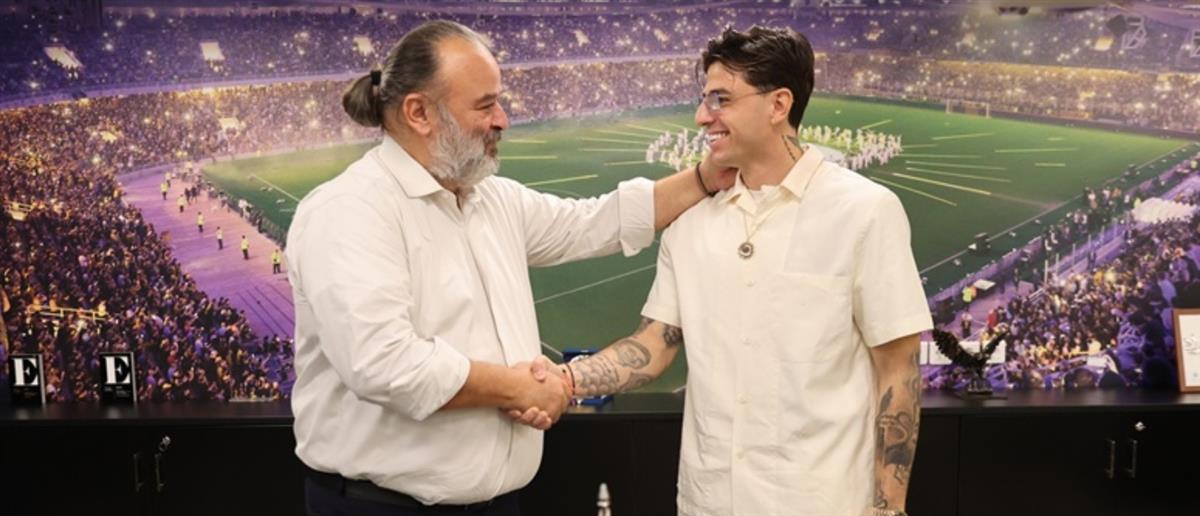 Ο διεθνής μπακ της Ένωσης έβαλε την υπογραφή του, παρουσία του ιδιοκτήτη της ΑΕΚ, Μάριου Ηλιόπουλου.